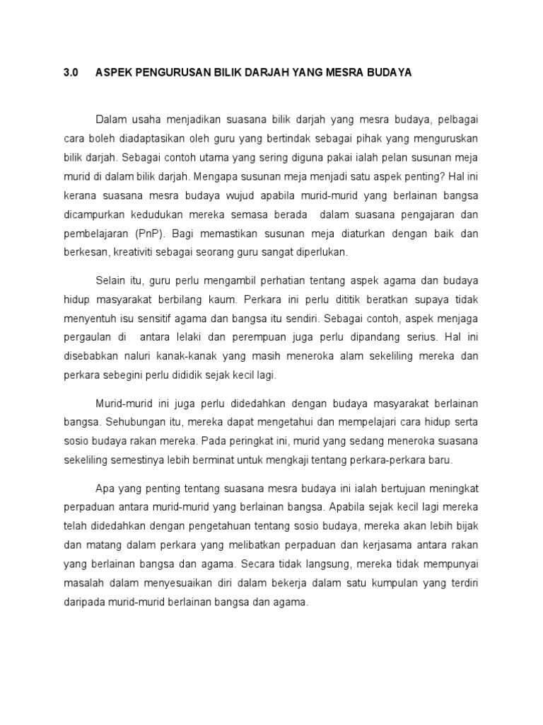 Bab 5 Persekitaran Bilik Darjah Yang Mesra Budaya from cdn.slidesharecdn.com Menunjukkan kepelbagaian dan perbezaan budaya di malaysia dalam tugas dan aktiviti yang disediakan untuk pelajar di bilik darjah. Pengurusan bilik darjah yang efektif memerlukan kemahiran merancang, mengelola dan merefleksi disamping keupayaan bekerja dalam kumpulan (bosch, 2006). Pengurusan bilik darjah adalah satu proses pembentukan suatu alam pembelajaran serta usaha untuk mengekalkannya dimana iklimnya kondusif untuk pelaksanaan proses pengajaran dan pembelajaran agar objektif yang ditetapkan tercapai (mok soon sang, 2011). Pengurusan bilik darjah bagi seseorang guru sememangnya teramat penting selain mengajar dan mendidik murid. Menekankan pendekatan pengajaran berpusatkan murid. Tanpa pengurusan bilik darjah yang mesra budaya maka ianya secara tidak langsung akan menyebabkan pelbagai masalah disiplin berlaku sehingga boleh. — bahasa melayu dan inggeris sebagai bahasa penghantar. Maka, bilik darjah yang diurus dengan baik dapat membentuk satu budaya pengajaran dan pembelajaran yang positif dan kondusif.