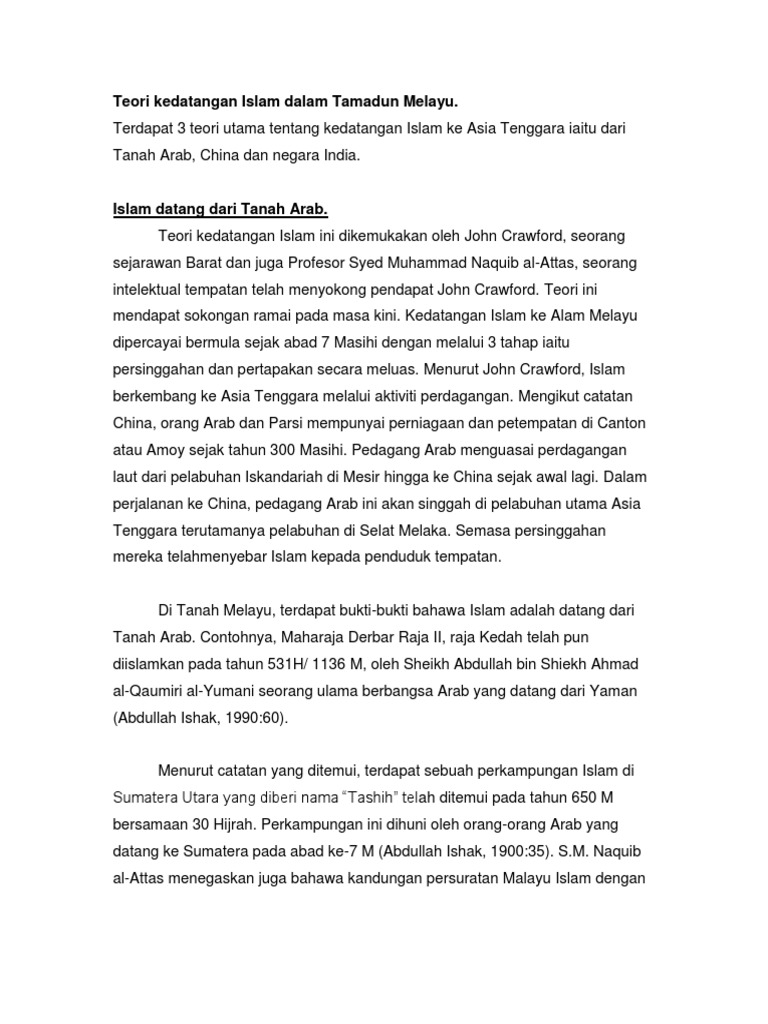 139468 Online Kedatangan Islam Ke Tanah Melayu Teori Kedatangan Islam Ke Asia Tenggara Islam Datang Dari Arab Parsi John Crawford Munurut Tokoh Course Hero from www.coursehero.com Kesimpulannya teori kedatangan islam ke nusantara dari tanah arab adalah yang paling dominan kehujahannya berbanding teori dari india, china dan champa. Dari luar, seperti dari india, persia, arab, dan eropa.struktur sosial, ekonomi, dan budayanya. Pembawanya berasal dari gujarat (cambay), india. Teori kedatangan islam ketamadun melayu mempunyai pelbagai kaedah dalam penyebaran agama islam melalui tamadun islam ke alam melayu. Agak statis dibandingkan dengan suku bangsa yang mendiami daerah 1978 tentang kedatangan islam ke nusantara menyimpulkan bahwa islam langsung datang. Teori kedatangan islam kedatangan islam dari india ( snouck hurgronje ) kedatangan islam dari china ( emanuel gadinho eredia ) kedatangan islam dari tanah arab ( john crawford ). Kurangnya fakta yang menjelaskan peranan bangsa arab dalam penyebaran. Bukan dari persia maupun arab.
